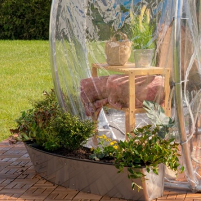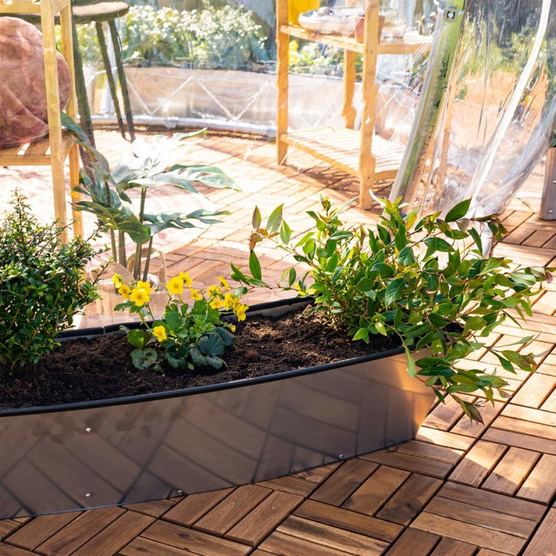 Ghiveciul Flowerbed sub forma de suport de flori, din otel inoxidabil.