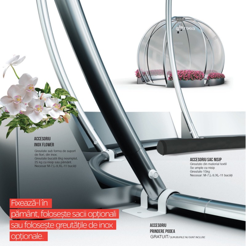 TOATE PRODUSELE ASTREEA IGLU POT FI UTILIZATE ÎN REGIM ALL-SEASON, PRIN ACCESORIILE DISPONIBILE, CARE POT FI COMANDATE OPIONAL. ACCESORIILE PERMIT TRANSFORMAREA UNUI IGLU DE IARNA DIN PVC, ÎNTR-UN BALDACHIN PENTRU PLAJA, UMBRELA DE TERASA, GREEN HOUSE, CORT PANORAMIC SAU SPATIU DE CAZARE ÎNTR-UN GLAMPING RESORT. DE ASEMENEA, ASTREEA IGLOO POT FI FOLOSITE PENTRU EVENIMENTE PRIVATE ( NUNTI, OPEN PARTY) SAU BUSINESS ( ASTREEA EXPO).