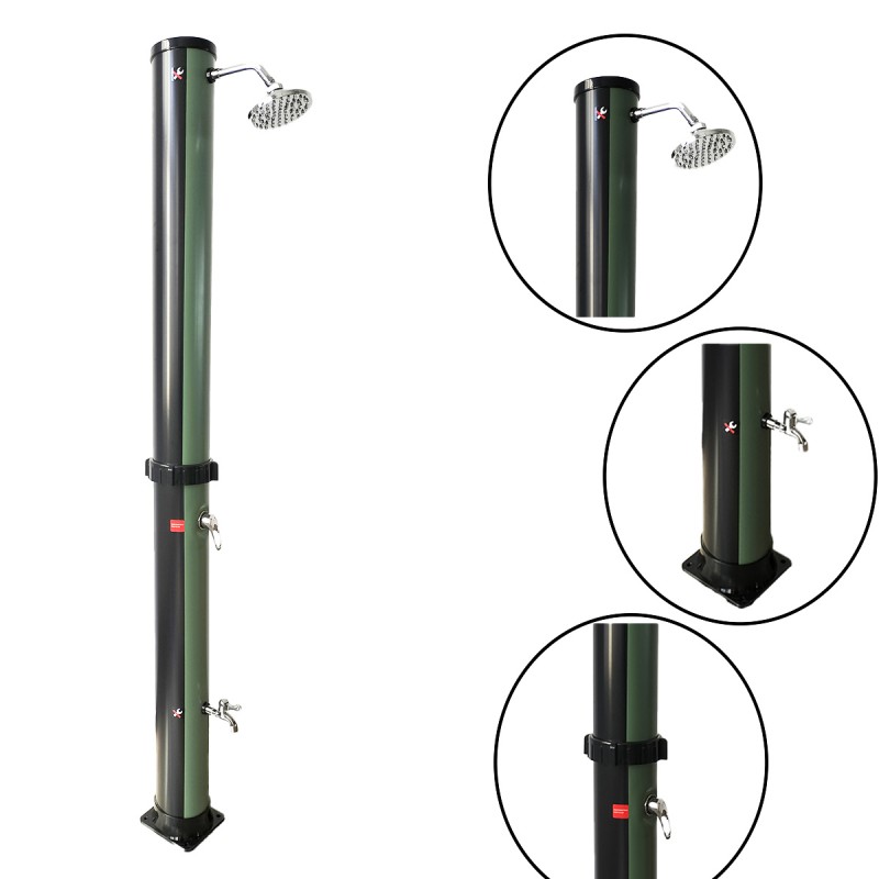 Dus solar pentru gradina si piscina, 38 Litri, dus pentru picioare, cap de dus tip ploaie 15 cm, negru si verde, Valencia