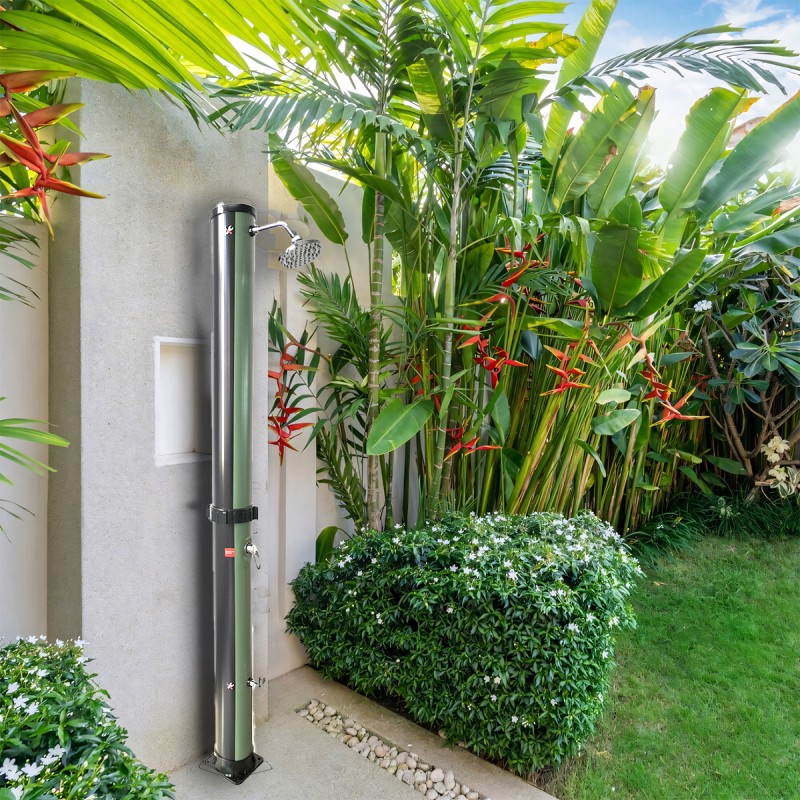 Apa calda gratuita, fara costuri suplimentare – Dusul incalzeste apa doar cu ajutorul energiei solare, atingand temperaturi de pana la 60°C, fara consum de electricitate.