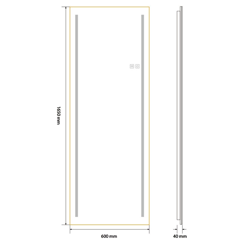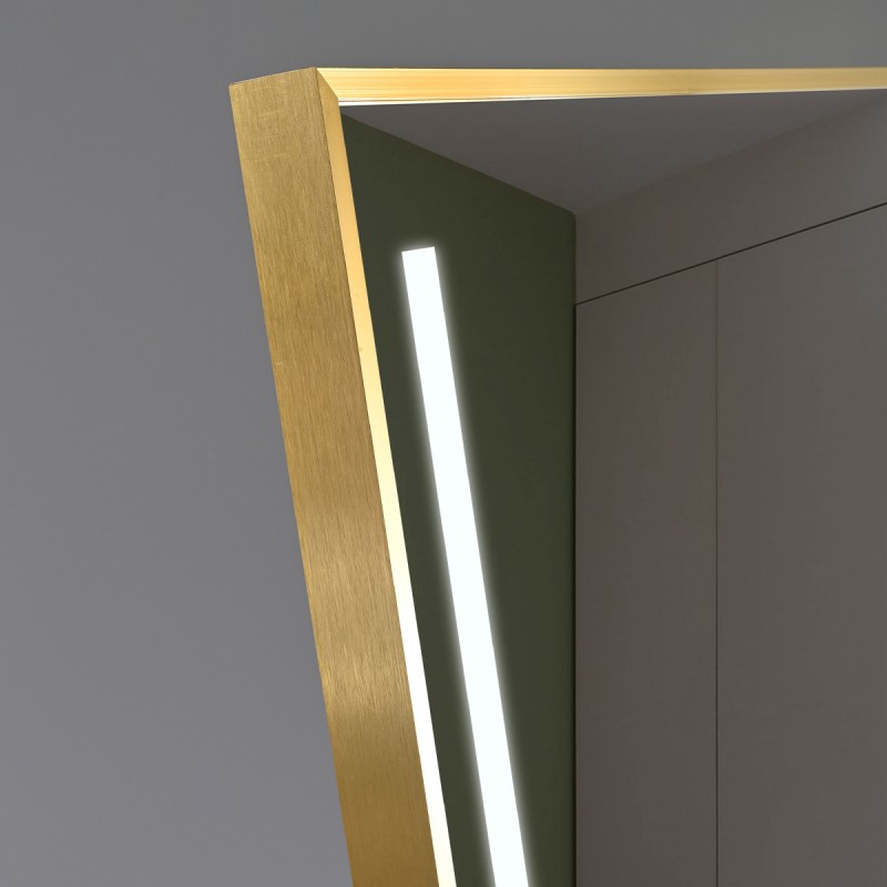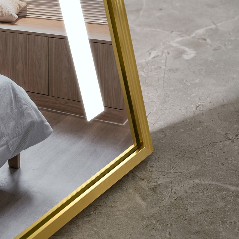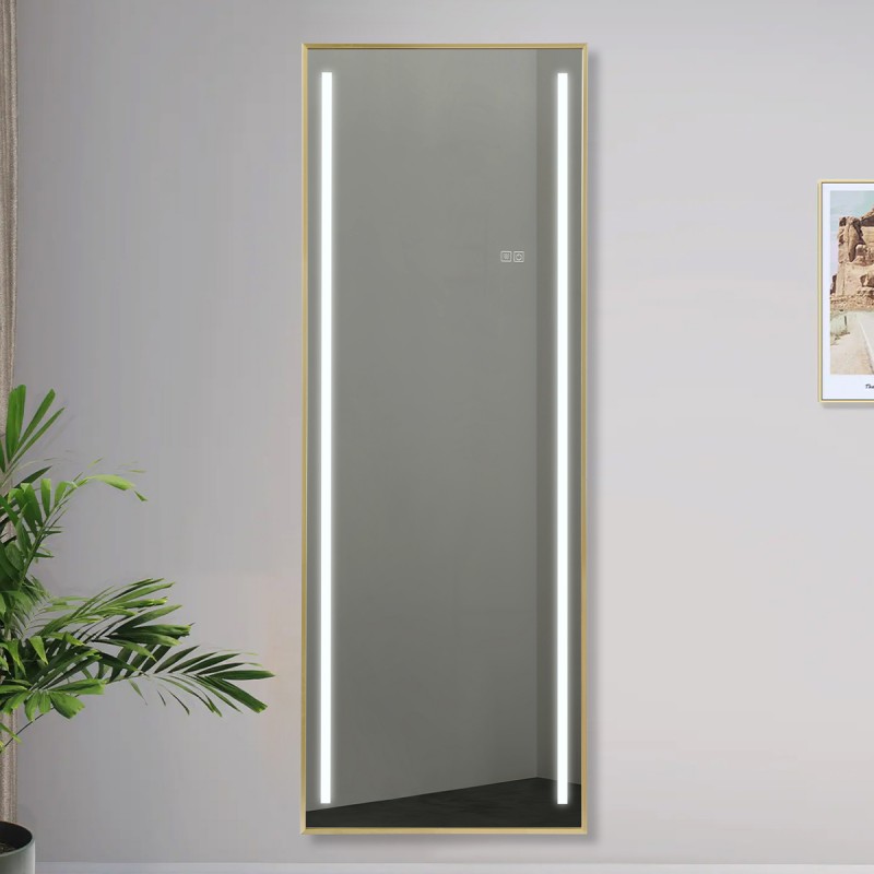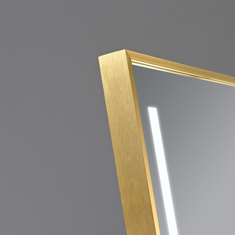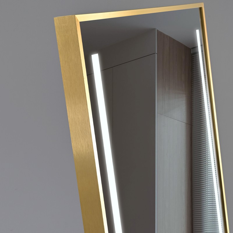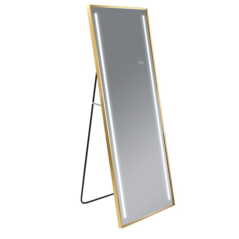 Oglinda Led de podea sau perete, cadru auriu aluminiu, touch, 3 Culori, dezaburire, 5 mm, dimensiune: 60x165 cm, Mirage