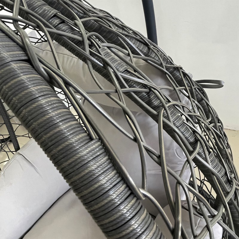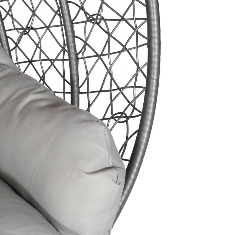 Scaun agatat California Grey, Fotoliu suspendat, Curte sau Living, comfortabil, ratan 3D