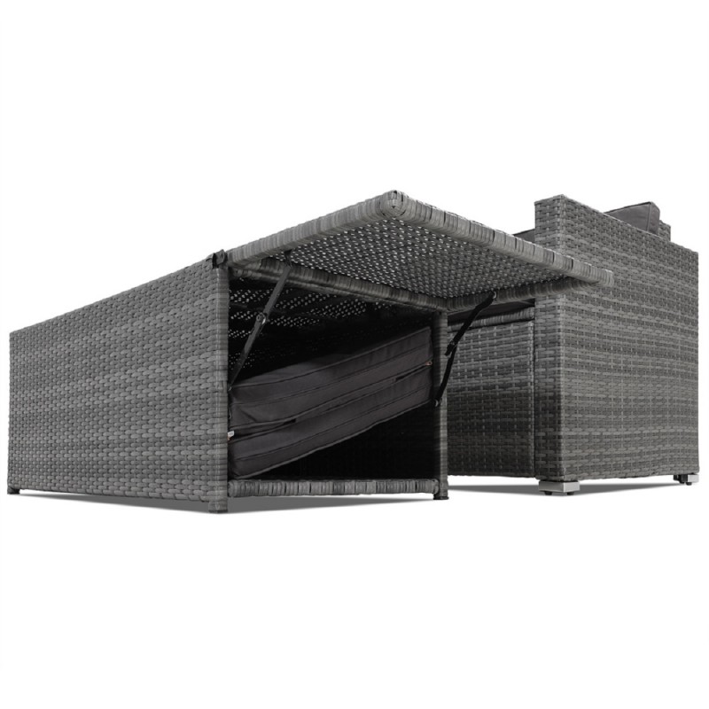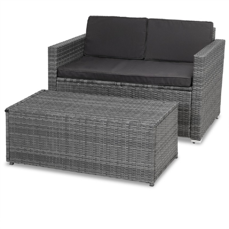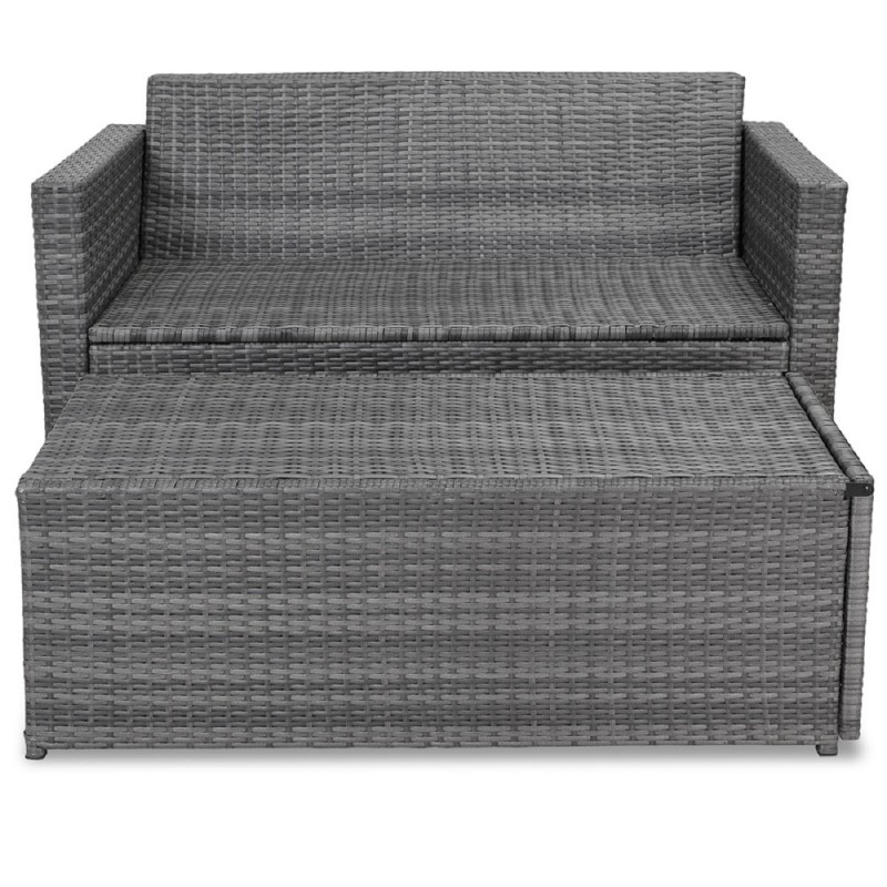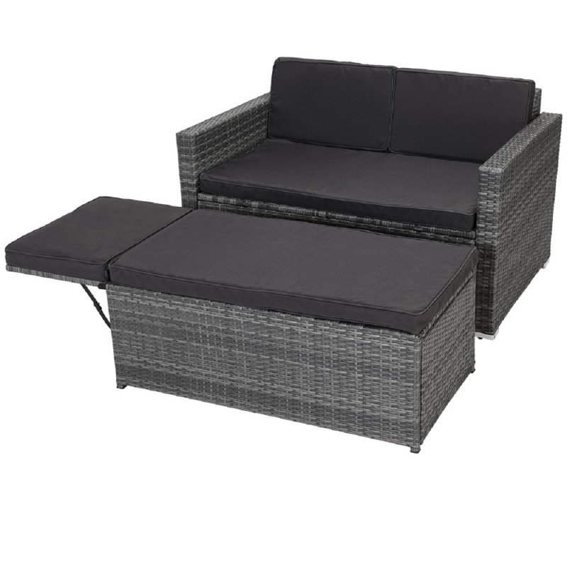 Canapea de 2 locuri, taburet extensibil cu spatiu de depozitare, inclusiv perne rezistente la apa, Poliratan, Ego-Mercur
