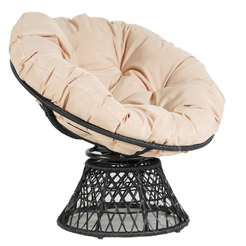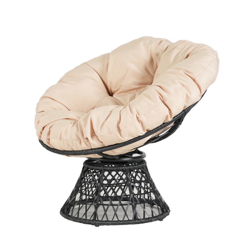Fotoliu rotativ 360°, terasa sau gradina, ratan, perna crem inclusa, Bamboo