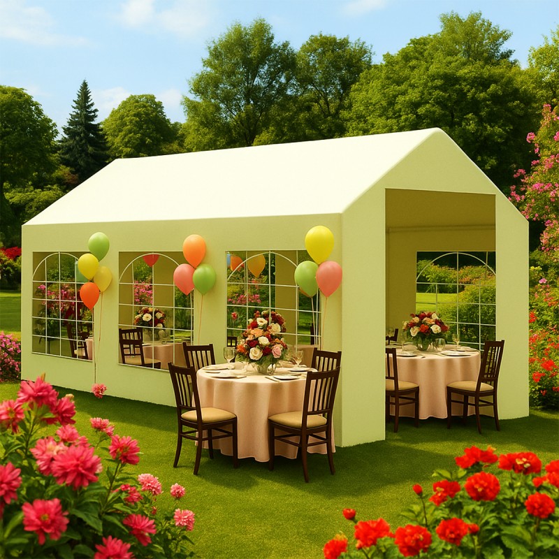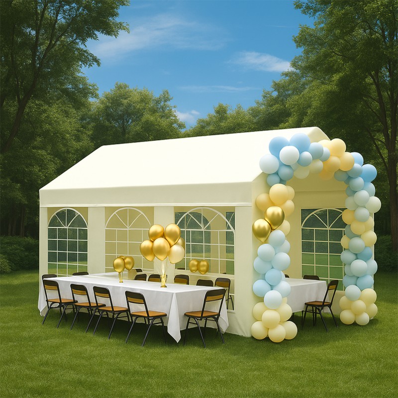 Descopera solutia perfecta pentru organizarea evenimentelor in aer liber cu pavilionul de 3x6 metri Ego Space, un produs ce imbina estetica rafinata cu rezistenta constructiva. Conceput pentru a raspunde celor mai exigente nevoi, acest cort ofera un spatiu generos, protejat, fiind ideal pentru petreceri, nunti, evenimente corporate, targuri si expozitii sezoniere. Finisajul crem adauga o nota eleganta oricarui cadru natural sau urban, integrandu-se armonios in decor.