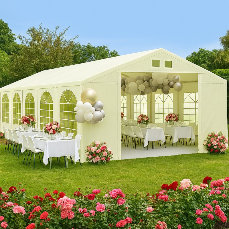 Transforma orice eveniment intr-o experienta de neuitat cu cortul crem 5x10 m de la Ego Space, creat pentru a oferi un cadru rafinat, spatios si protejat in orice conditii meteorologice. Indiferent daca organizezi o nunta, un botez, o expozitie sau un eveniment corporate, acest pavilion profesional combina functionalitatea avansata cu un design discret si elegant.