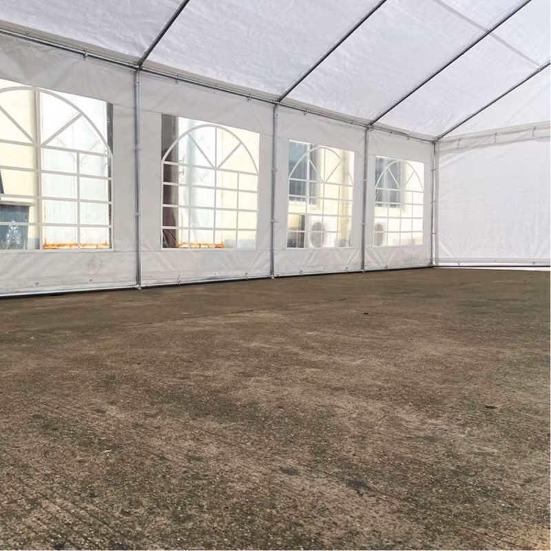 Cortul este echipat cu 10 panouri laterale cu ferestre transparente, ce permit patrunderea luminii naturale, oferind un ambient cald si deschis. Cele doua intrari cu inchidere prin fermoar faciliteaza accesul din ambele capete ale cortului, contribuind la o organizare fluida si practica a evenimentului.