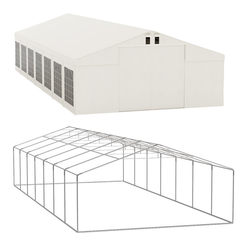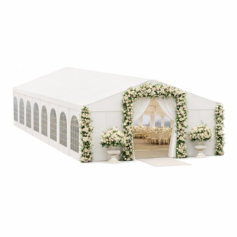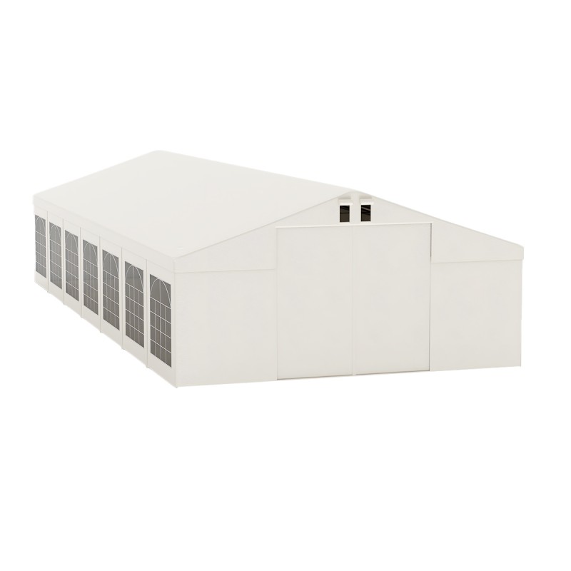 Flexibilitate si functionalitate ridicata – Cu 14 ferestre pentru lumina naturala, 2 intrari practice si 12 panouri laterale detasabile, cortul poate fi adaptat rapid oricarui tip de eveniment sau configuratie, oferind un spatiu elegant si versatil.