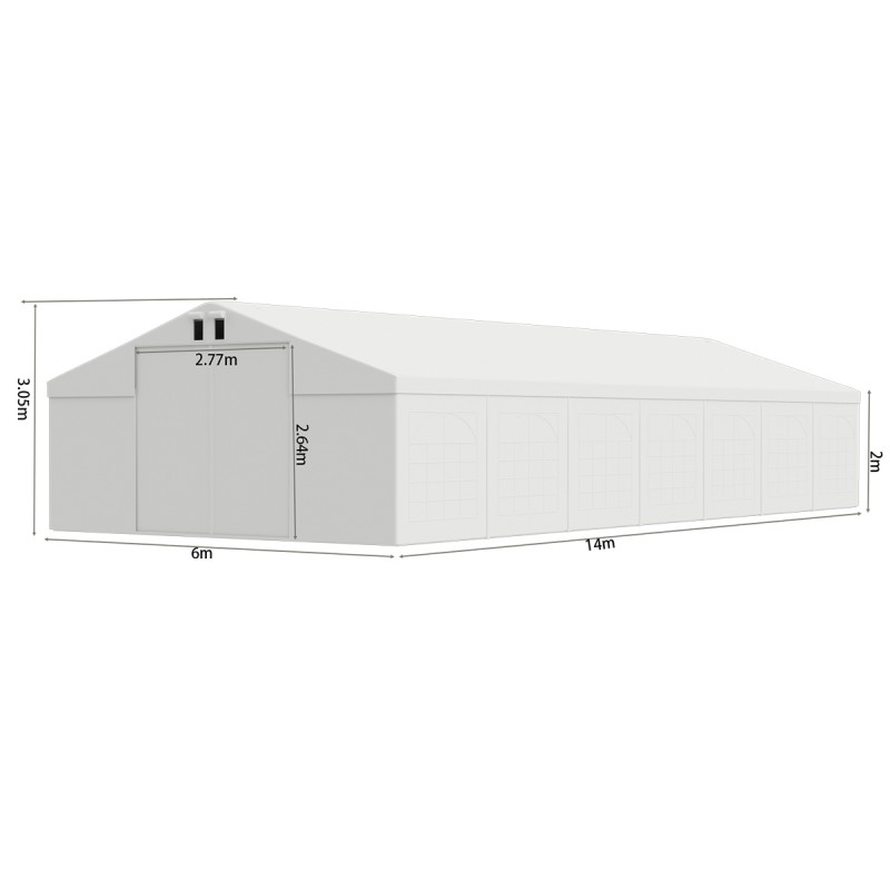 Cort profesional, Alb, 6x14 m, 14 ferestre+2 intrari, cadru ranforsat din otel galvanizat, 560g/m2 PVC