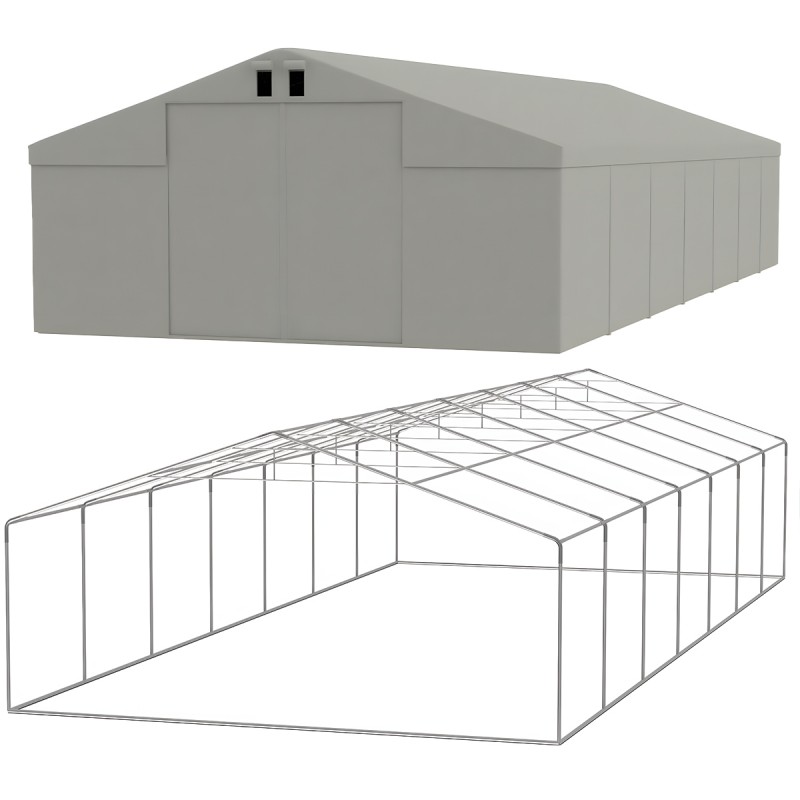 Structura ranforsata si durabila – Cadru metalic solid din otel galvanizat cu conectori intariti, ideal pentru utilizare pe termen lung in spatii industriale, agricole sau comerciale.