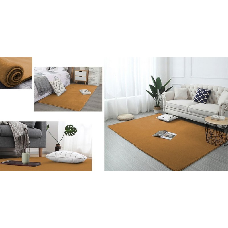 Covor Plusat, EGO-Rabbit, Kakhi, 3 cm grosime, spate Anti-Derapant, 200x200 cm, microfibra de matase