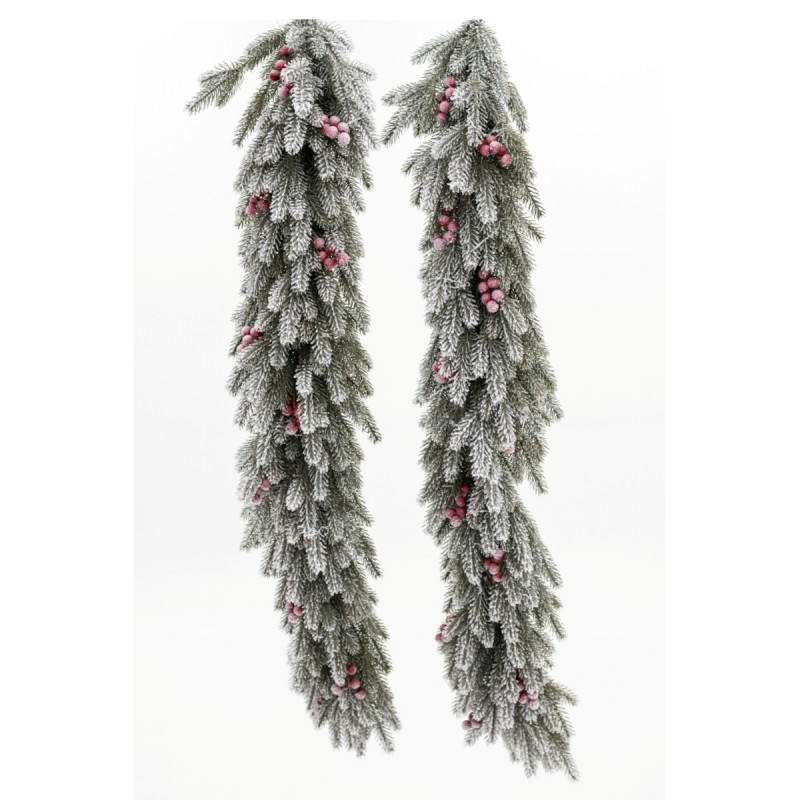Ghirlanda Craciun, crengute brad 3D, zapada si boabe de Laur, 100 cm, Ego