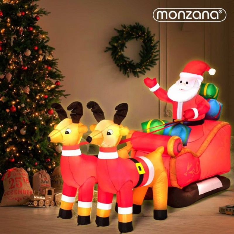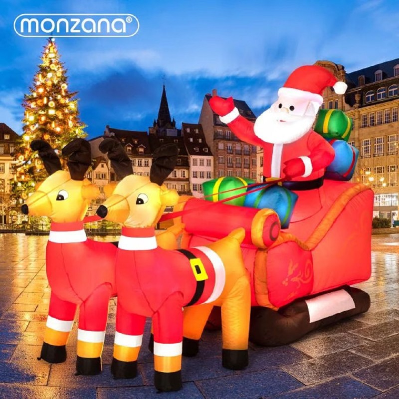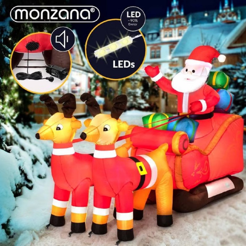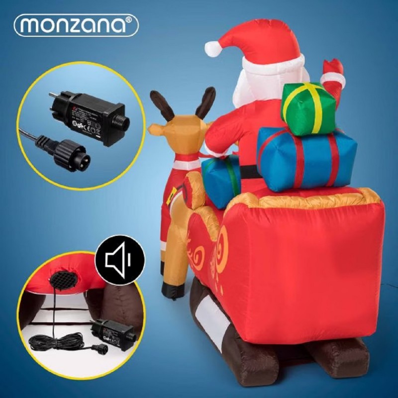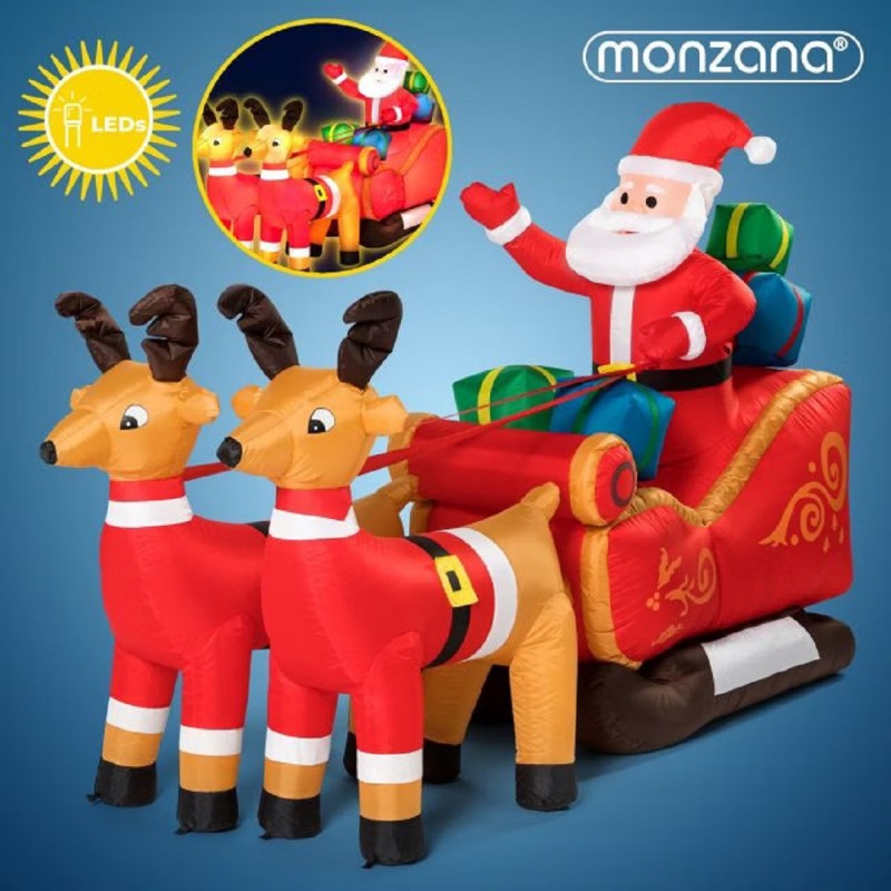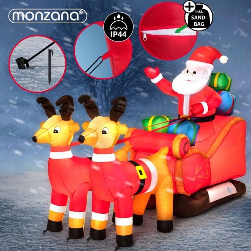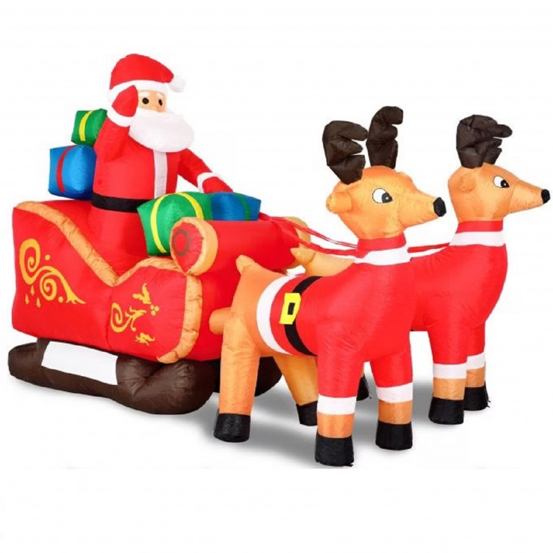 Figurina gonflabila cu pompa electrica inclusa, 240x92 cm, Iluminat, 6 Leduri decorative, Ego-Mos Craciun cu sanie