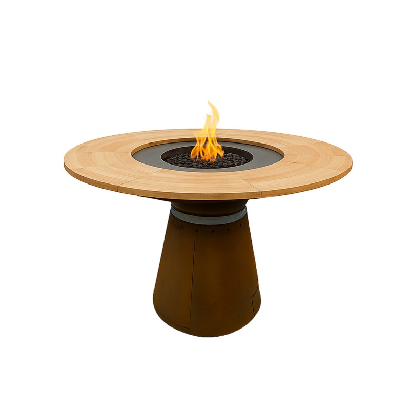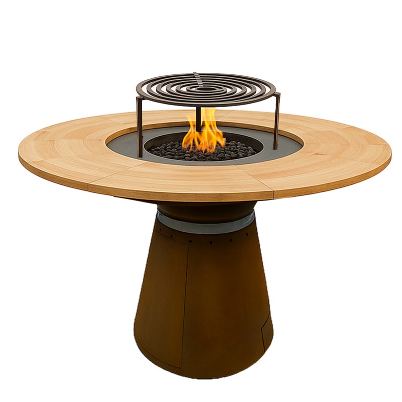 Durabilitate extrema: Constructie din otel Corten cu plita groasa de 6 mm si blat solid de 15 mm, rezistenta la intemperii si uzura.