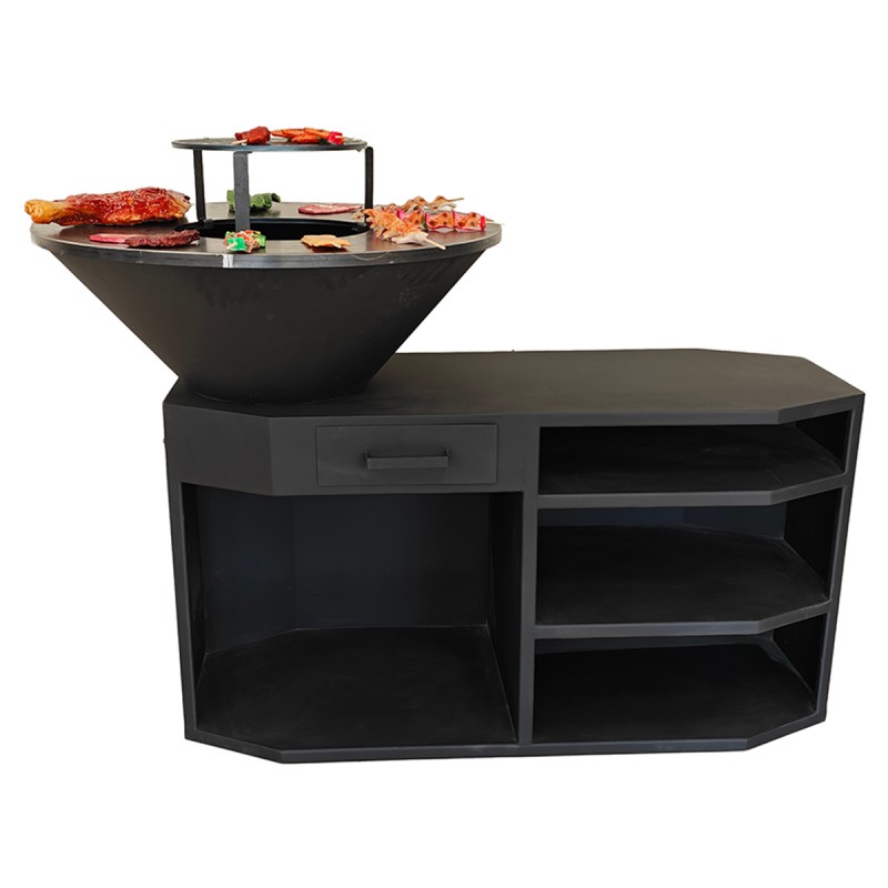 Functionalitate completa – suprafata mare de gatit, rafturi laterale, sertar pentru cenusa si suport generos pentru lemne transforma fiecare sesiune de gatit in aer liber intr-o experienta placuta si eficienta.