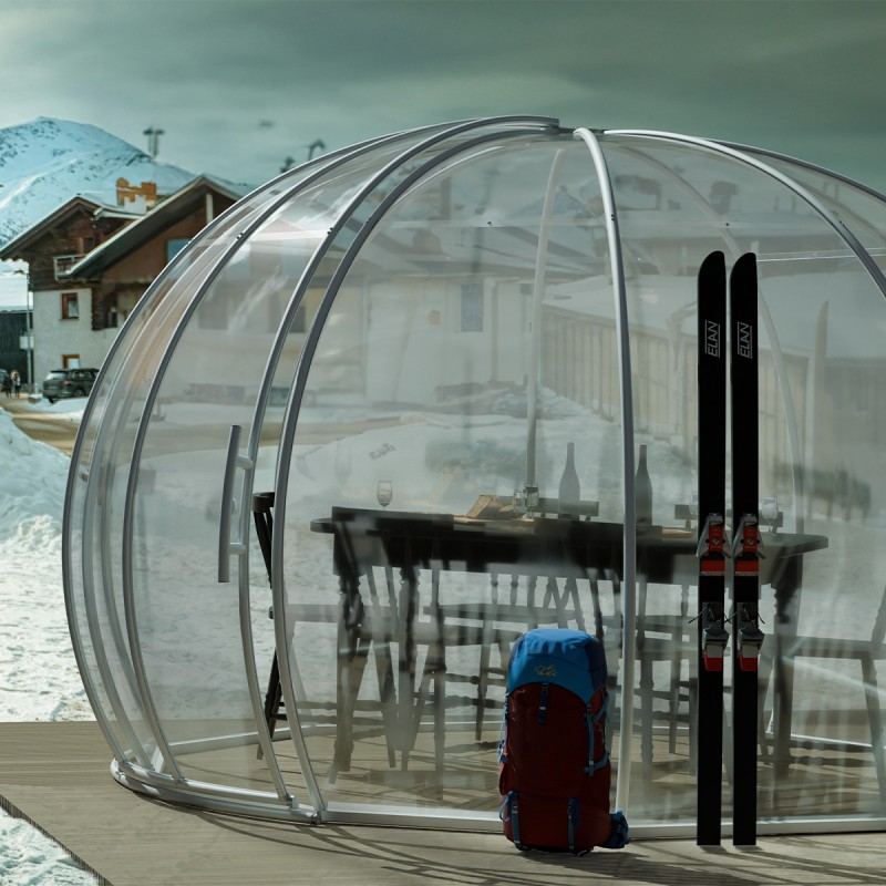Adaptabilitate: Cu accesoriile optionale, Iglu Astreea MAX poate fi utilizat in toate anotimpurile, oferind un spatiu confortabil atat in zilele reci de iarna, cat si in cele calde de vara, perfect pentru locatiile HORECA care doresc sa isi extinda serviciile tot timpul anului.