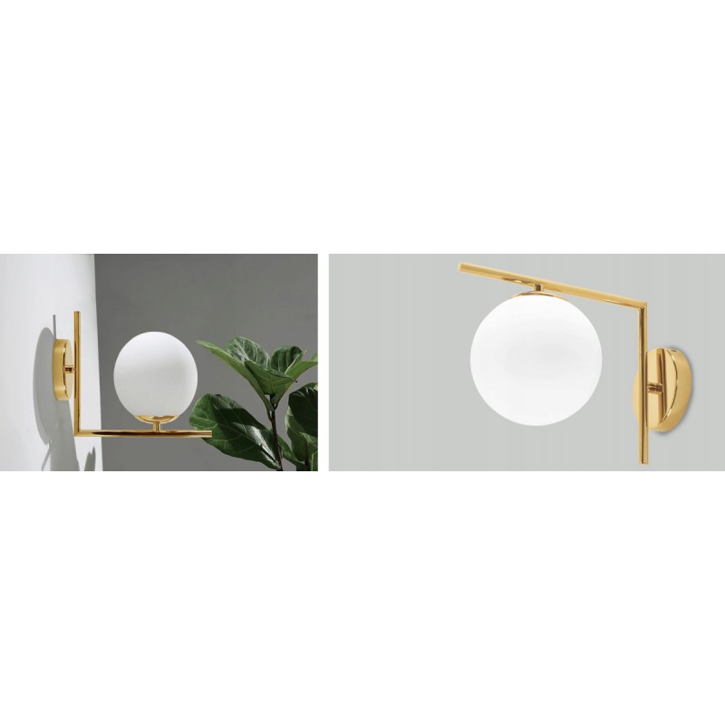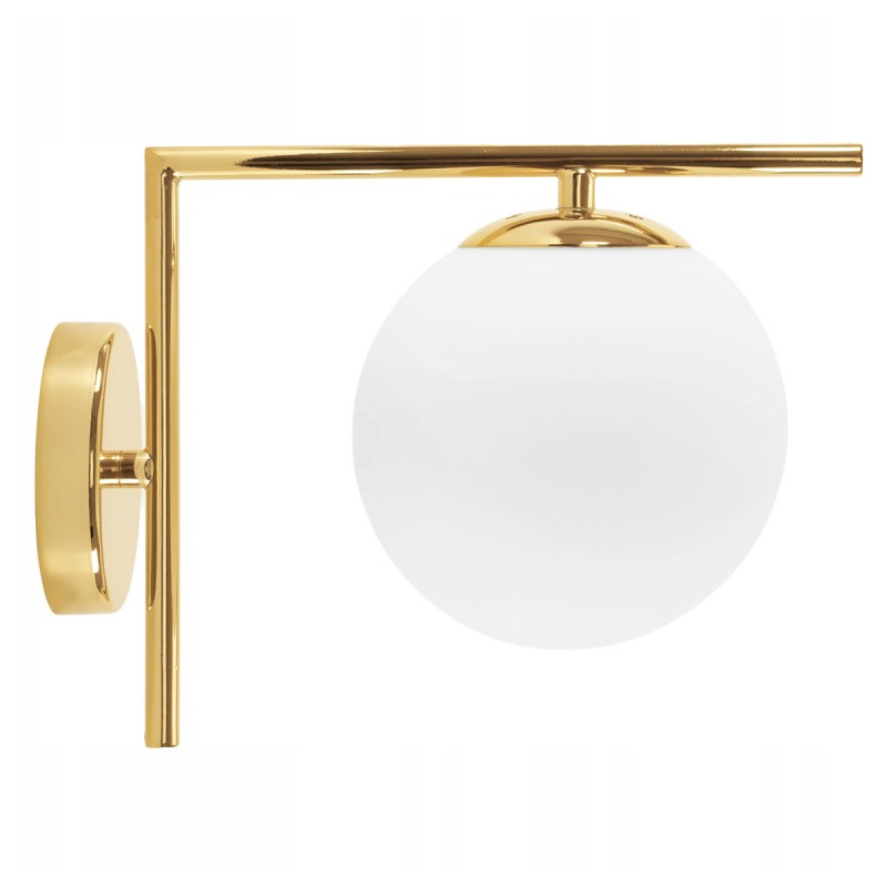Aplica EGO Kula 90 Degree, E27, Auriu/Alb, 230V, glob de sticla alba