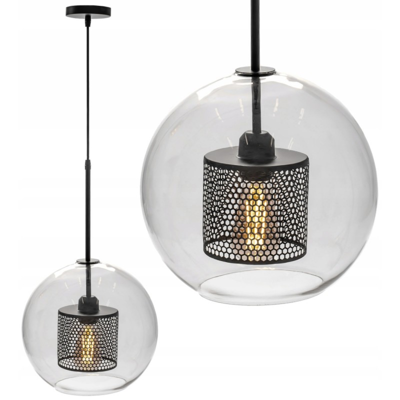 Pendulul este realizat din metal cu finisaj negru, avand globul de sticla si un suport metalic pentru tavan.