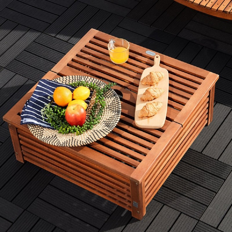 Masuta de cafea realizata din lemn de salcam de inalta calitate care confera acesteia o rezistenta ridicata la intemperi.