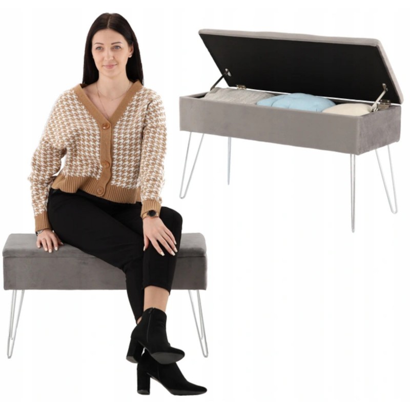 Bancuta cu spatiu de depozitare, tapitata cu catifea, hol sau camera, Gri, Ashley