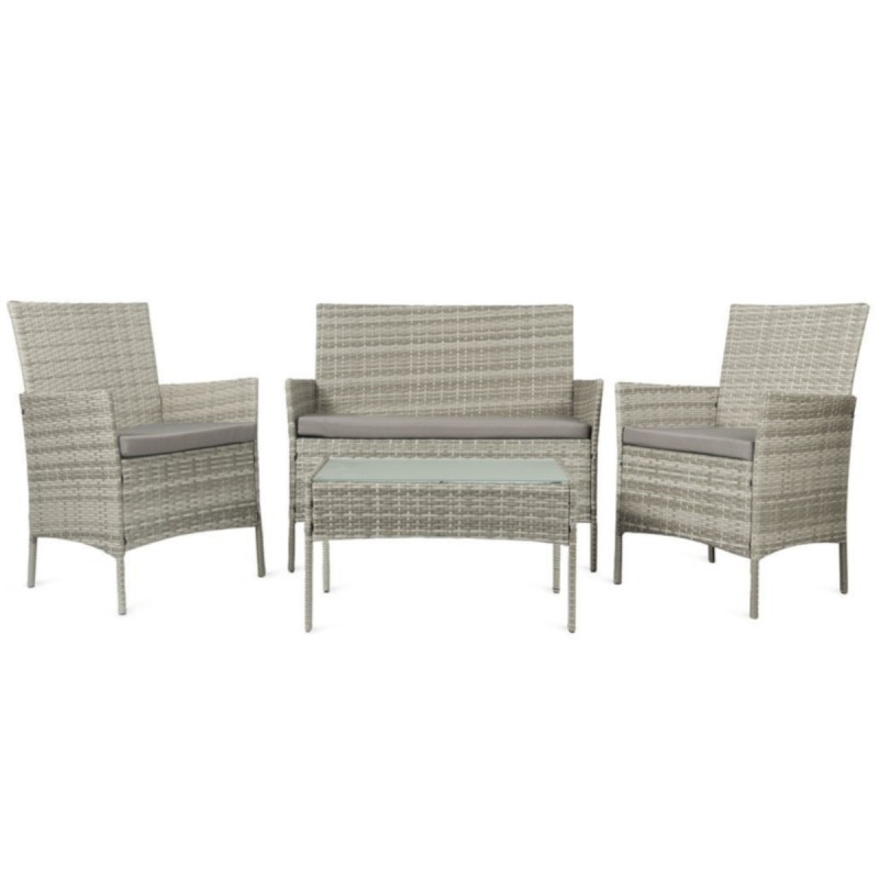 Set mobilier terasa sau gradina, perne incluse, Ego-Rodos, 2 fotolii, masa cu blat de sticla si canapea, Gri
