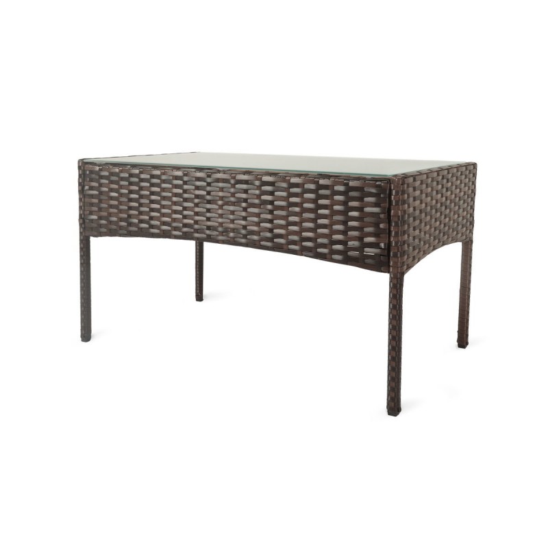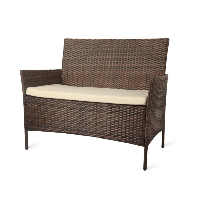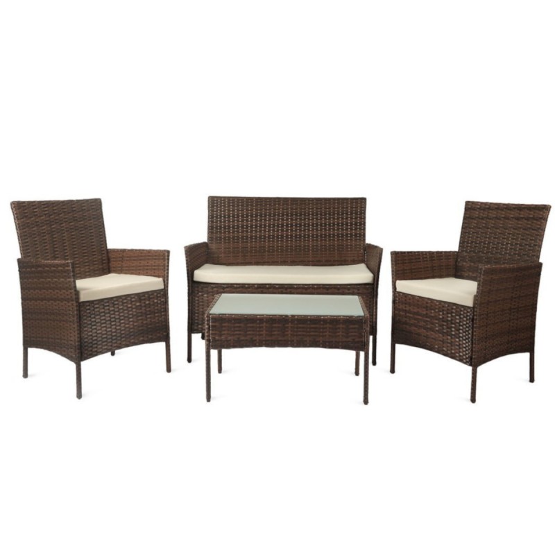 Set mobilier terasa sau gradina, perne incluse, Ego- Rodos, 2 fotolii, masa cu blat de sticla si canapea, Maro