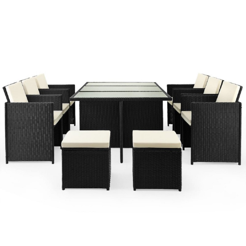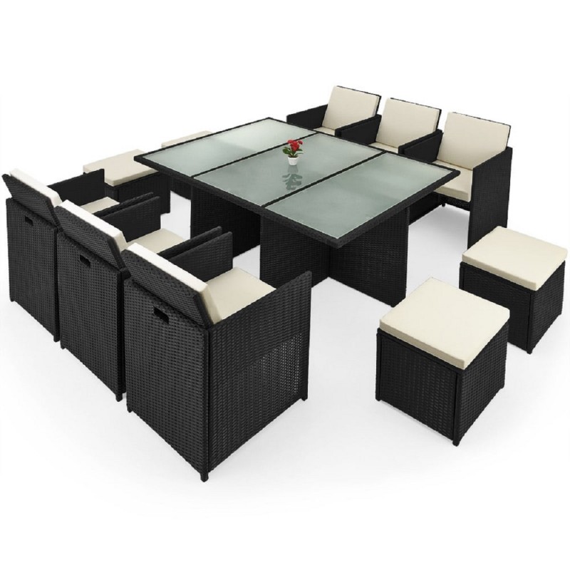 Set mobilier terasa gradina, Cub pliabil, masa mare, 6 scaune cu spatar rabatabil, 4 tabureti, 180x120x74 cm, Negru, Michigan