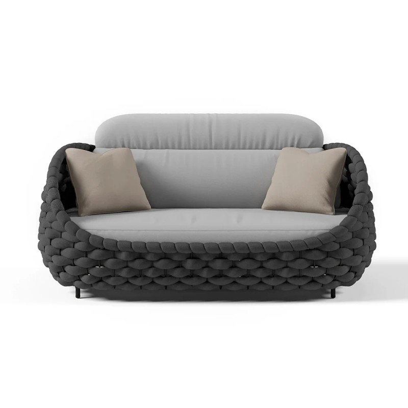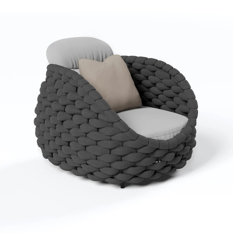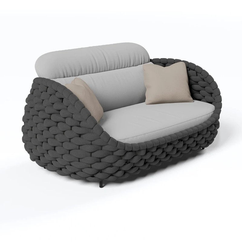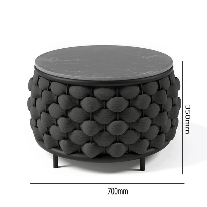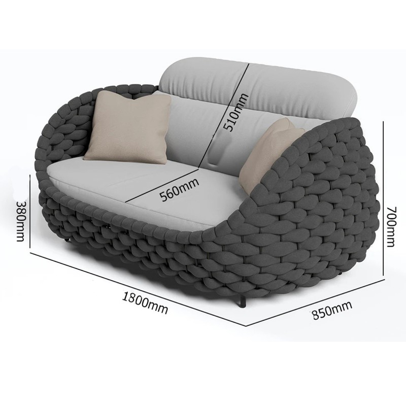 Durabilitate: Constructia din aluminiu si impletitura tip funie groasa asigura rezistenta indelungata impotriva conditiilor meteo, mentinand aspectul estetic al setului.