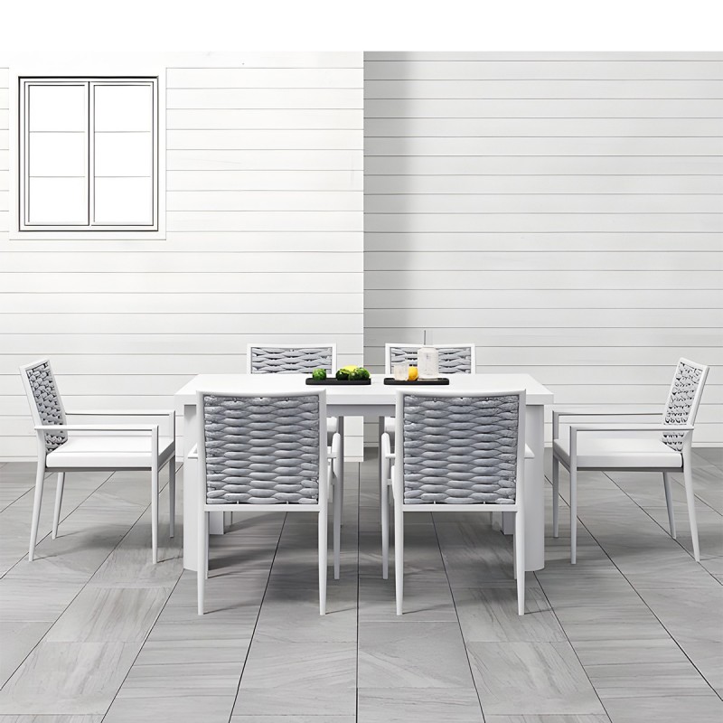 Set mobilier terasa sau gradina, masa din aluminiu si lemn, 6 scaune, impletitura tip funie, Torino