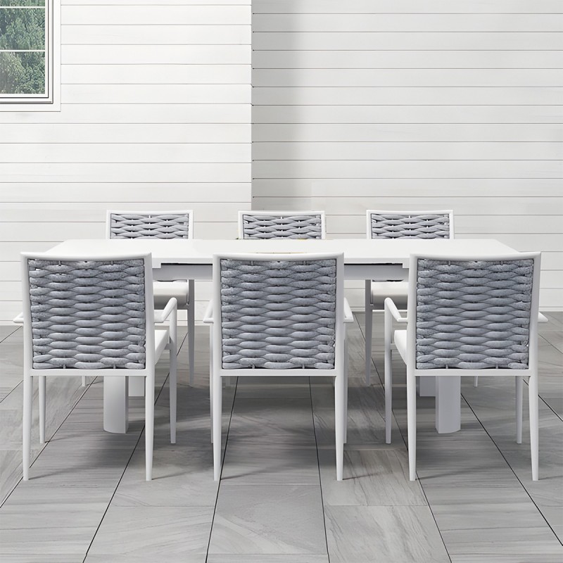 Materiale Premium: Combina rezistenta aluminiului cu estetica naturala a impletiturii si a lemnului, pentru un set de mobilier durabil si elegant.