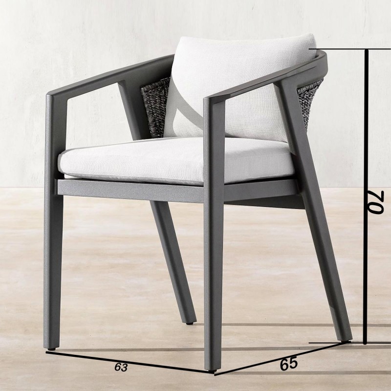 Materiale de Calitate: Scaunele sunt realizate cu un cadru din aluminiu acoperit cu impletitura de poliratan Dark Grey, combinand rezistenta si eleganta. Poliratanul este cunoscut pentru durabilitatea sa si pentru usurinta cu care se intretine, fiind perfect pentru utilizarea in exterior. Confort Maxim: Fiecare scaun vine cu perne pentru sezut si spatar de 5 cm grosime, de culoare alba, care adauga un contrast placut si un confort superior. Design Ergonomic: Scaunele sunt proiectate ergonomic pentru a asigura o postura confortabila, permitandu-ti sa te relaxezi ore intregi fara disconfort.