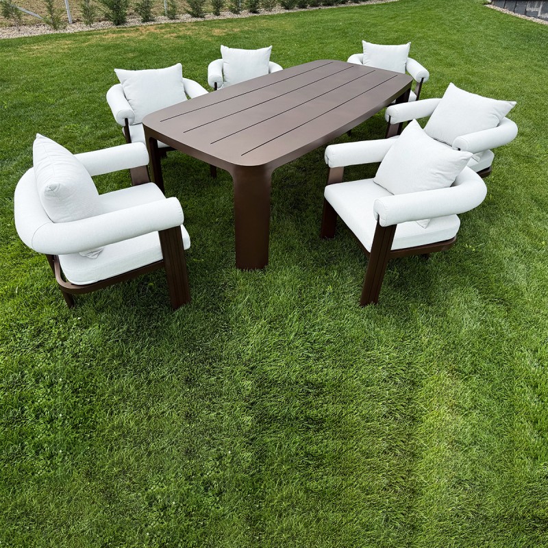 Set mobilier de 6 persoane, gradina sau terasa, aluminiu, masa 214x102 cm + 6 scaune, tesatura 100% Olefin, Bora Bora