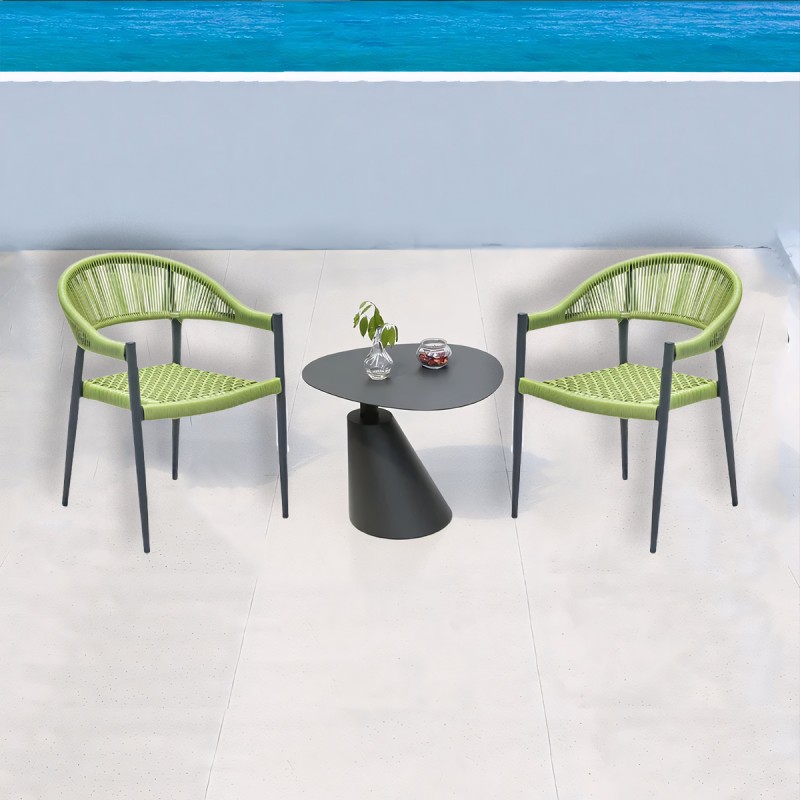 Set masa cu 2 scaune, terasa sau gradina, aluminiu dark grey, impletitura tip funie verde, Oasis