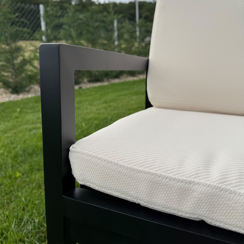 Durabilitate si rezistenta la intemperii – Cadrul din aluminiu vopsit electrostatic si tapiteria 100% Olefin, rezistenta la UV si umezeala, asigura o durata lunga de viata, fara riscul de coroziune sau decolorare.