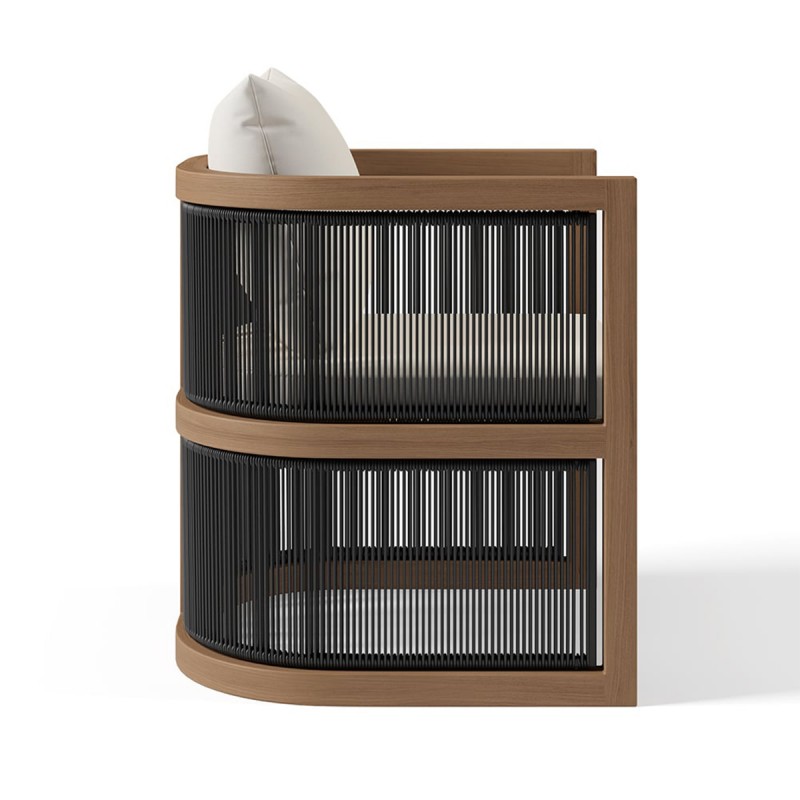 Fabricat din lemn de tec masiv si impletitura tip funie, setul Gardenia este proiectat pentru a rezista ani intregi in conditii de utilizare in aer liber, fara deformari, decolorare sau deteriorari cauzate de umezeala si raze UV.