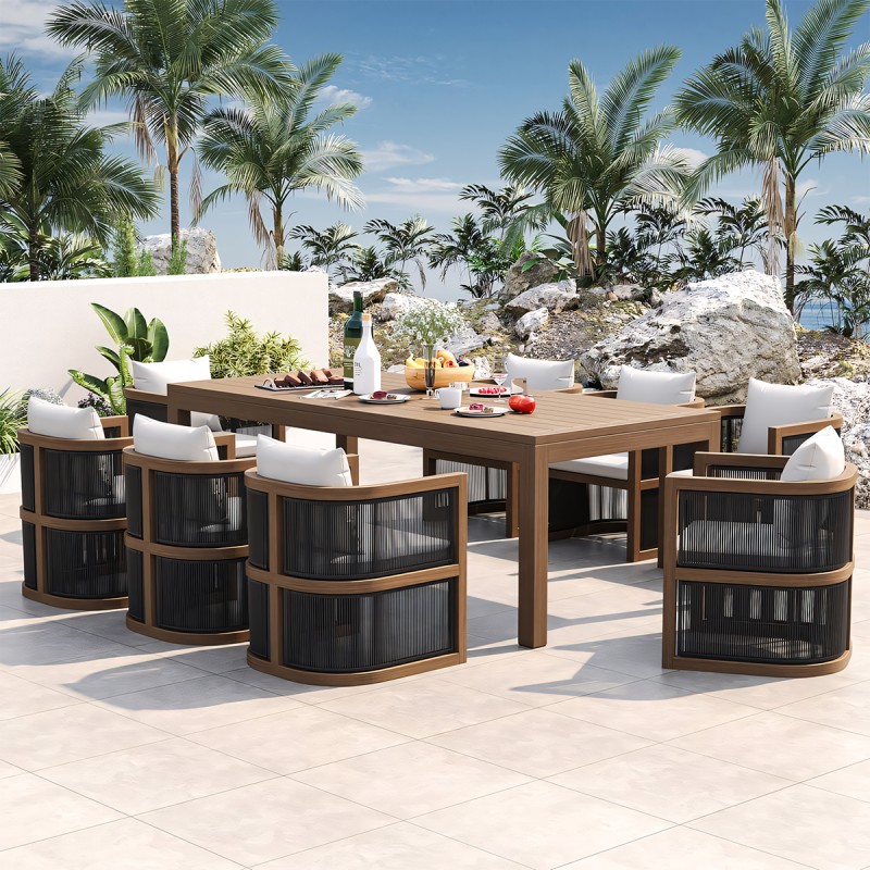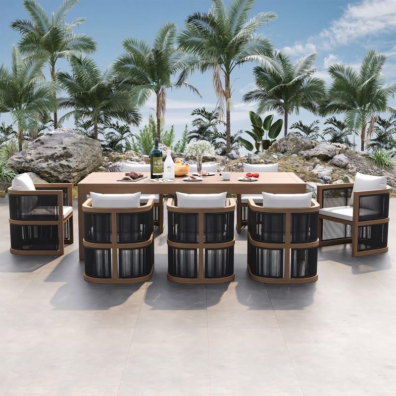 Setul Gardenia imbina armonios textura naturala a lemnului de tec cu liniile elegante si minimaliste ale impletiturii de tip funie, rezultand un mobilier versatil, potrivit atat pentru amenajari moderne, cat si rustice. Prin dimensiunile sale generoase, setul este ideal pentru reuniuni de familie, mese festive sau momente de relaxare in aer liber, oferind functionalitate si estetica intr-un singur produs.