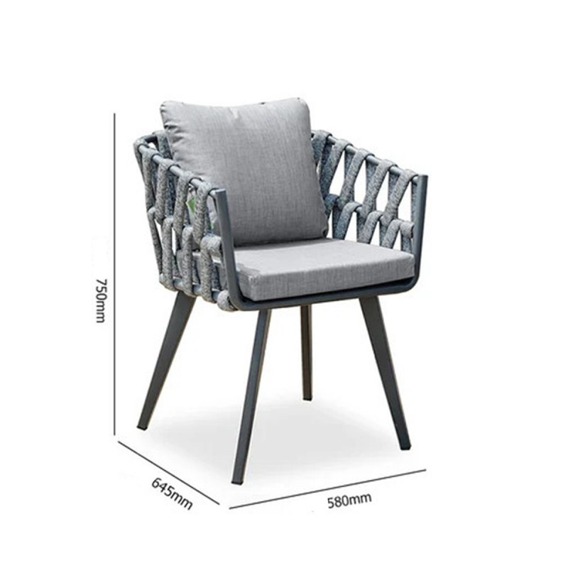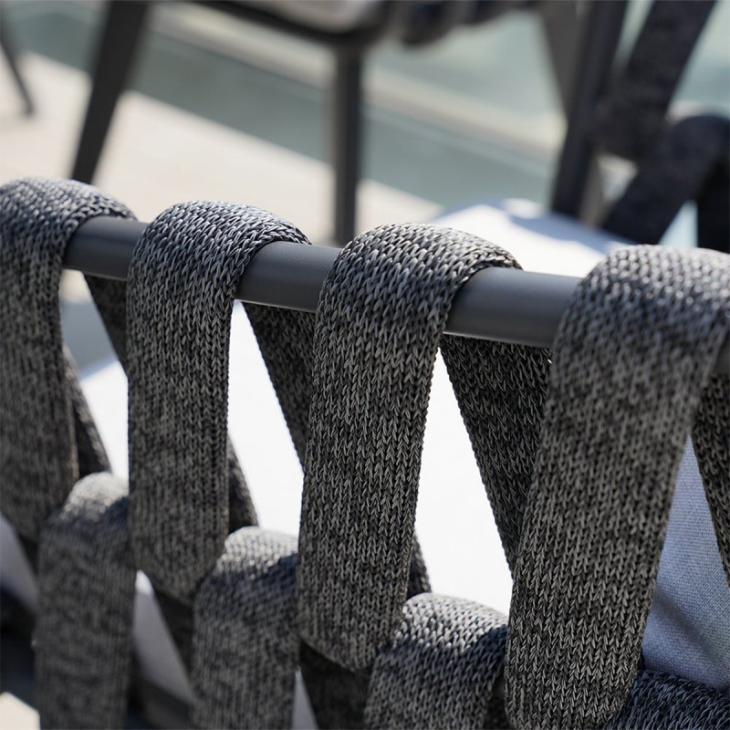 Constructia integrala din aluminiu si impletitura rezistenta tip funie face ca Setul Riga sa reziste excelent in conditii de umezeala, ploaie, soare puternic sau variatii de temperatura.