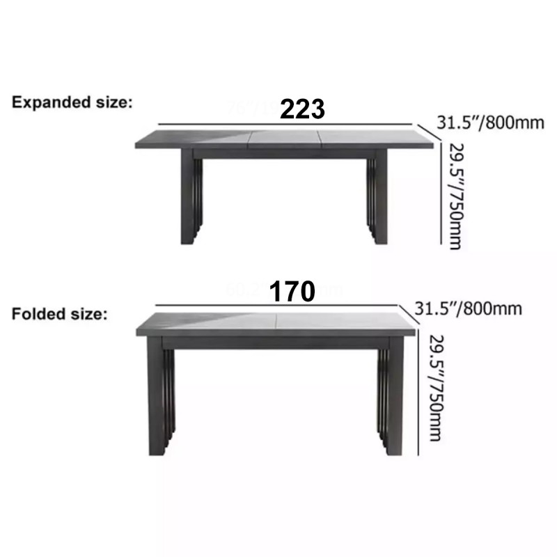 Masa din aluminiu, cu blat extensibil de la 170 cm la 223 cm lungime, iti permite sa adaptezi cu usurinta spatiul in functie de eveniment si numarul de invitati.