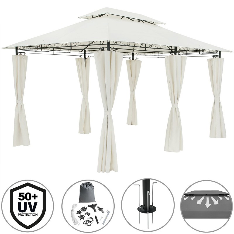 Pavilion de gradina cu acoperis detasabil, pereti laterali cu fermoare, protectie UV+50, Bej, 4x3 m, Mauro